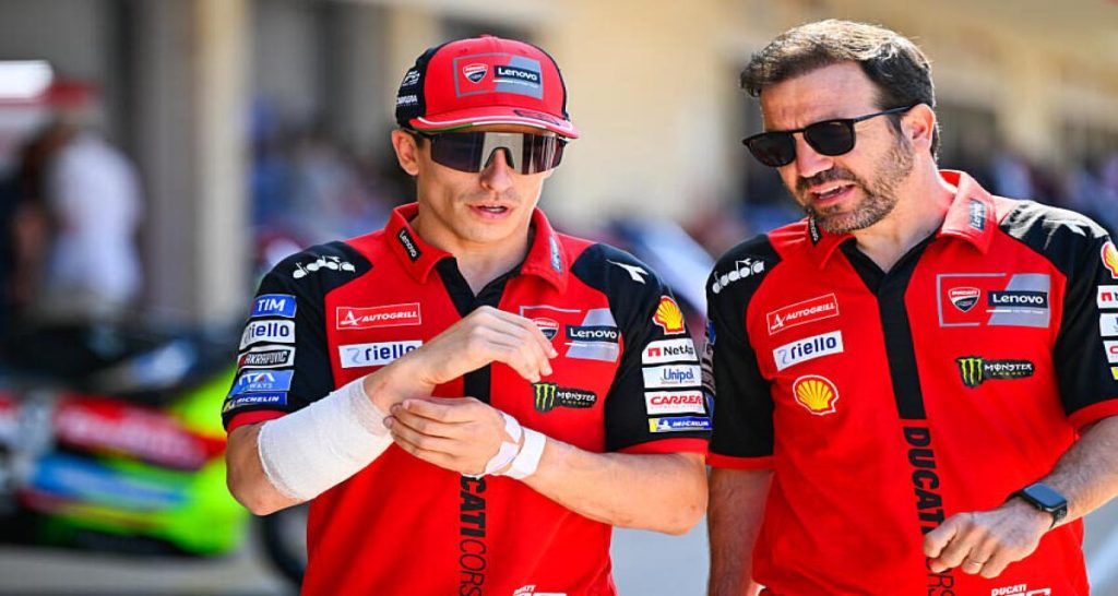 Marc Márquez, malgré une blessure lors des essais du vendredi et une pénalité « , » a terminé courageusement cinquième, se battant contre la douleur et les difficultés mécaniques. Dall’Igna a salué son attitude, reconnaissant l’esprit de combat de Márquez comme caractéristique d’un véritable champion.\n\nQuelles perspectives pour Bagnaia et DiGiannantonio ?